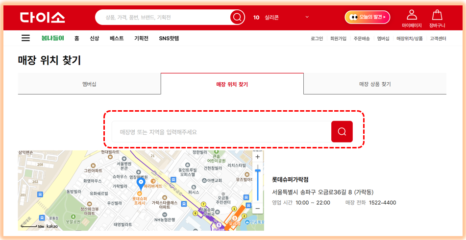 다이소 홈페이지에서 매장 정보 및 품목별 재고 조회 하기