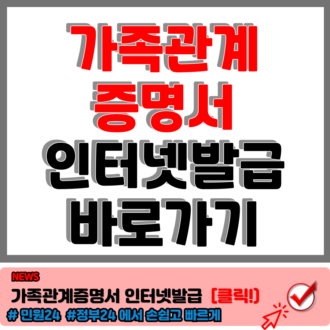 아래에 가족관계증명서 인터넷발급 민원24 바로가기 를 통해 지금 바로 받으시기 바랍니다.