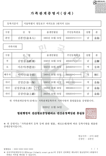 | 특정 | 본인과 신청인이 선택한 부,모, 배우자 및 자녀에 관한 사항 | ![]() |
