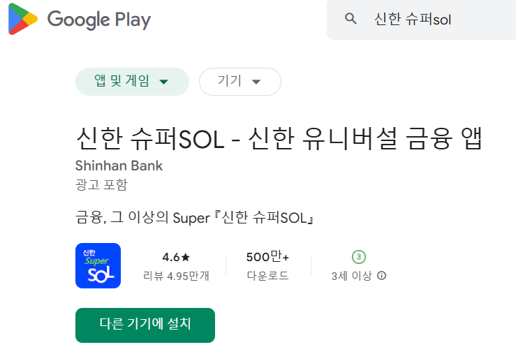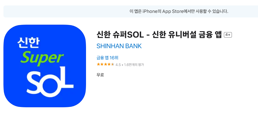 1. 신한 슈퍼SOL 어플을 내려받아 설치합니다.
