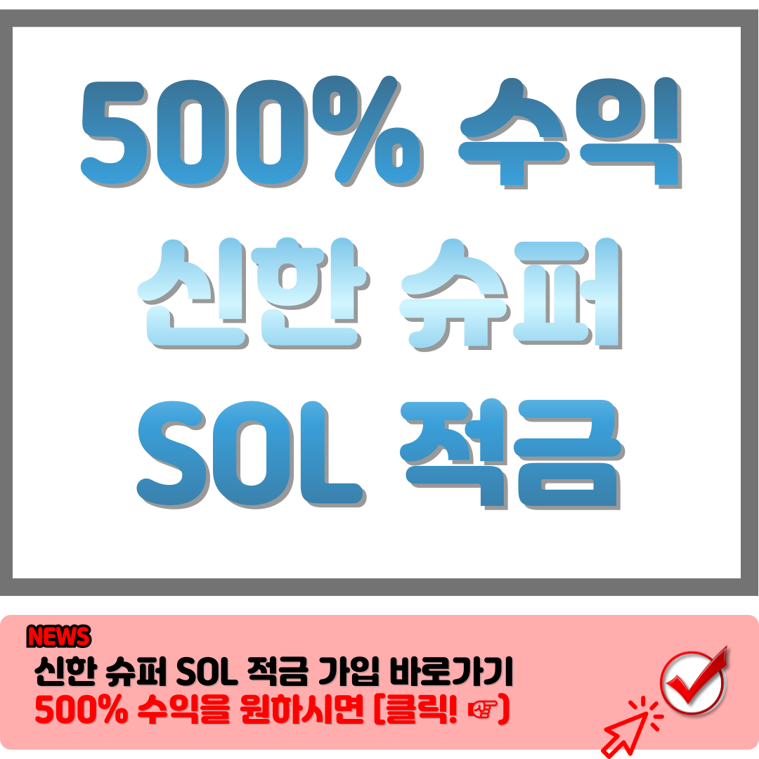아래에 신한 슈퍼SOL 포인트 적금 가입 바로가기를 통해 지금 바로 500% 수익 얻어가시기 바랍니다.