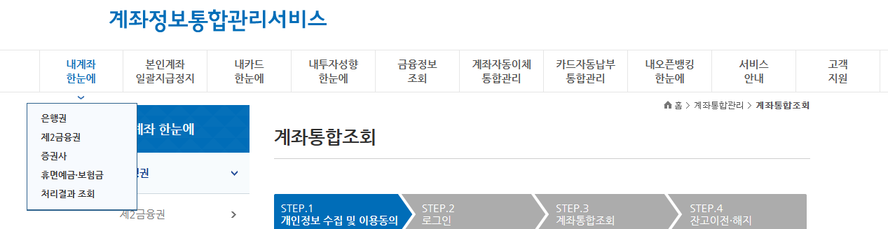 계좌정보통합관리서비스 (payinfo.or.kr) 바로가기