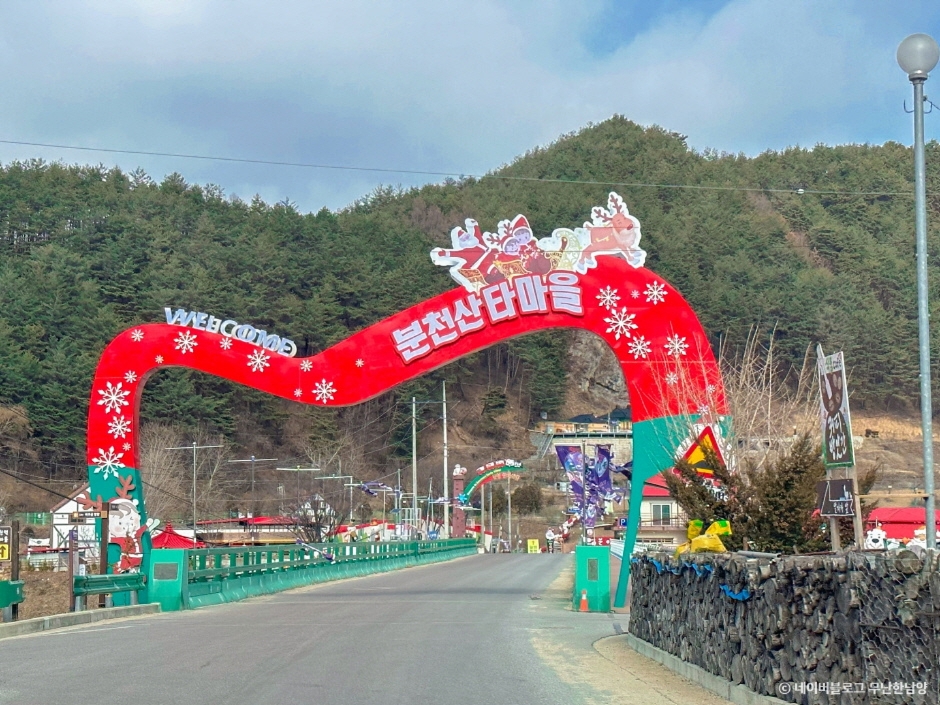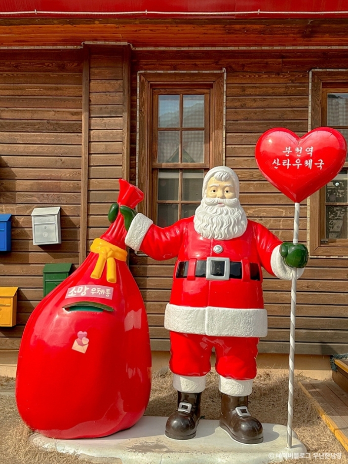 분천 산타마을은 경상북도 봉화군 소천면 분천역에 위치한 곳으로, 백두대간이라는 자연 자원과 동심을 자극 하는 산타클로스 이미지를 접목해 1년내내 크리스마스 분위기를 느낄 수 있는 마을을 조성하였습니다. 16년 한국지역진흥 재단 겨울여행지 선호도 조사 2위를 하고, 문화 체육관광국 한국 관광의 별 선정 등의 성과를 낸 대표 관광지 입니다. 마을내에는 산타열차, 눈썰매장, 산타우체국등 아이들과 같이 즐길 체험거리가 다양합니다.